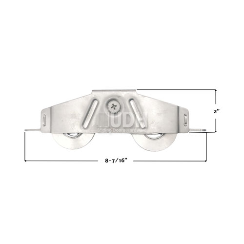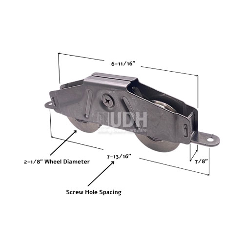 Sliding Door Roller 2-1/8” Stainless-Steel Precision Tandem (6-11/16” x 2”) | Premium patio sliding glass door tandem roller with a stainless-steel housing, stainless-steel assembly mechanism, stainless-steel precision ball-bearing wheels, and side adjustment screw.