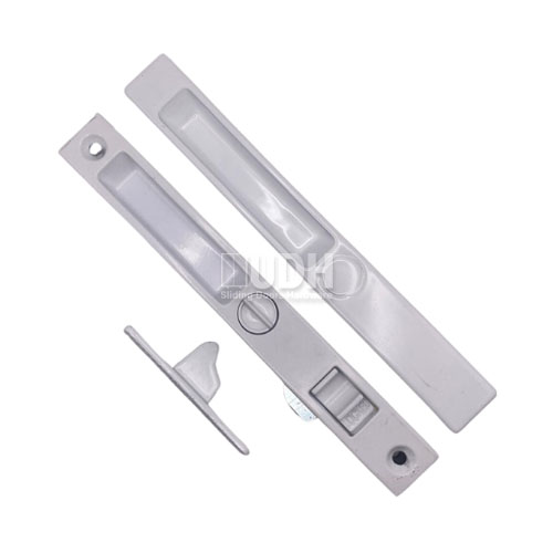Sliding Door Standard Lock 6-5/8″ Screw Spacing Aluminum White | Premium patio sliding glass door lock, standard bolt lock, non keyed with night latch and keeper, aluminum alloy, and white finish.